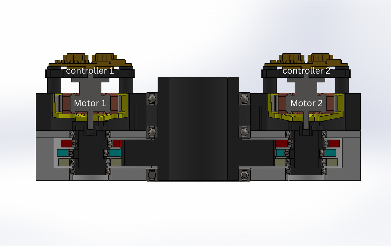 Mechanical Synchronization: Velocity and position of the two motors are physically locked via the internal linkage(plates), ensuring perfect phase alignment between the two BLDC inputs without complex electronic master-slave lag.